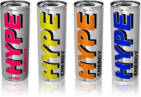 در طراحی قوطیهای نوشیدنی انرژیزای هایپ از میراث و سابقه حضورمان در عرصه اتوموبیلرانی الهام گرفتهایم تا طرح قوطیها مشابه خودروهای مسابقهای، سرعت و شتاب مسابقت را تداعی کند. در این طراحی المانهای فیبر کربن و درپوش مشکی مات با رنگهای پرانرژی ادغام شدهاست تا شما را در یک آن از ۰ به ۱۰۰ برساند.